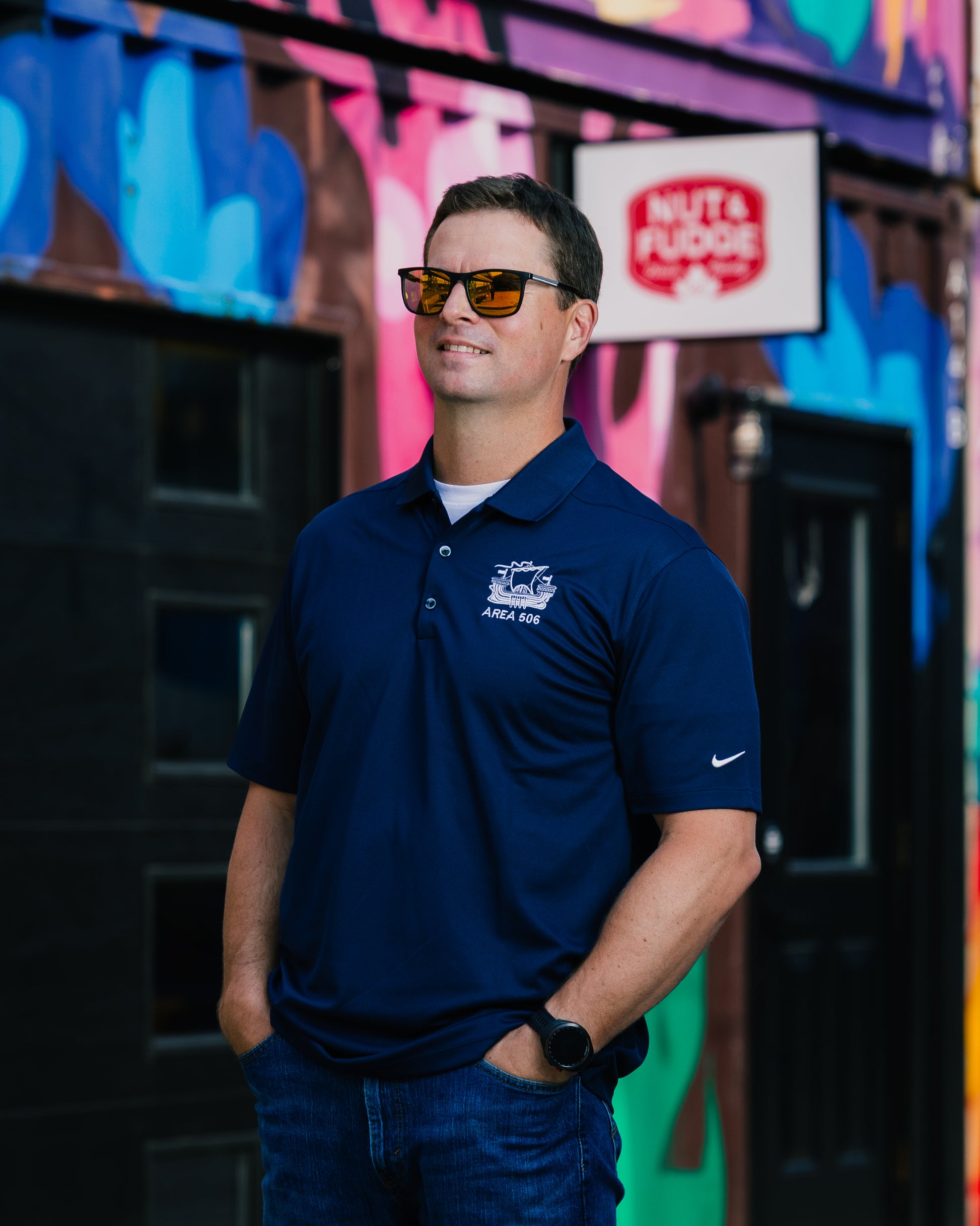 Navy blue Nike golf shirt with AREA 506 logo front left chest